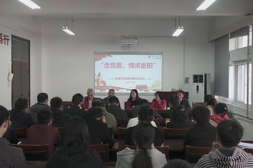 为进一步以文化人、以文育人,凝聚迈进新征程、奋进新时代的精神力量,加强“四史”学习教育,弘扬尊老敬老的传统美德,营造爱老助老氛围,10月13日,在一年一度的中华民族传统节日重阳节到来之际,能源与环境公司举行了“念党恩•情浓重阳”师生座谈会,并邀请周义德和王志成两位退休教师回校过节,与公司师生共叙旧情。公司在校全体党政领导班子和近50名师生参加,会议由能源与环境公司副经理朱彩霞主持。