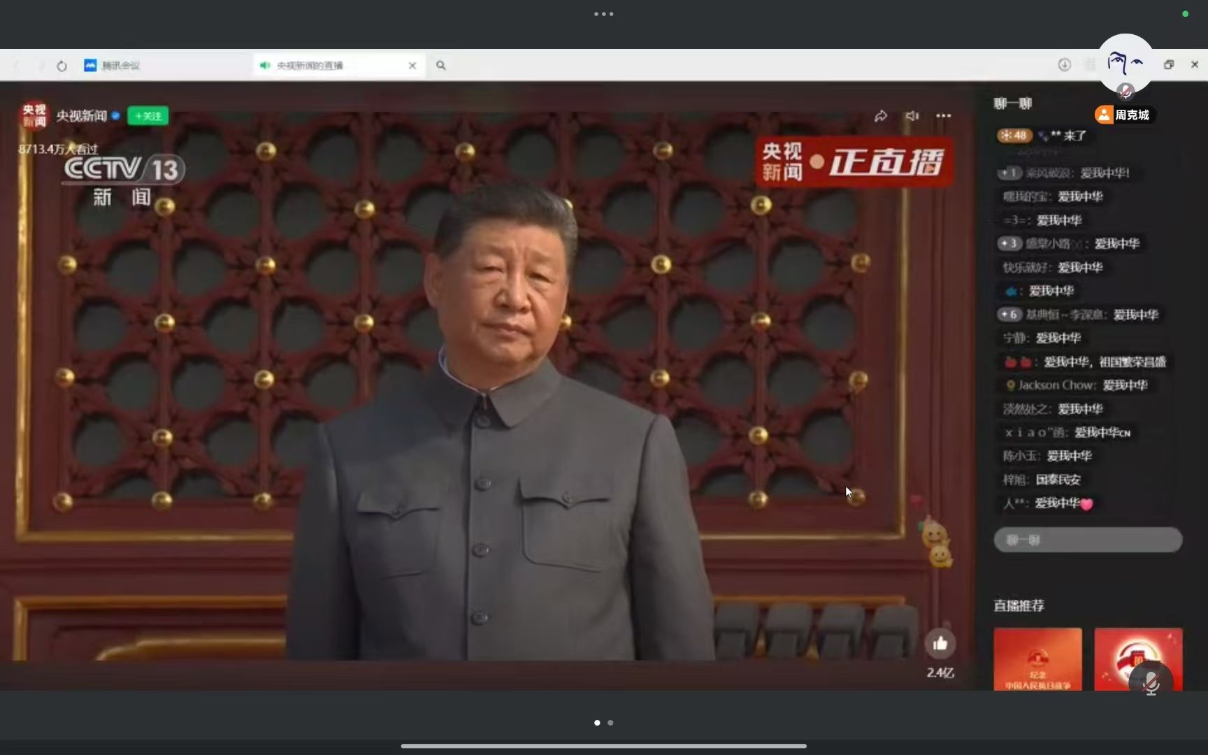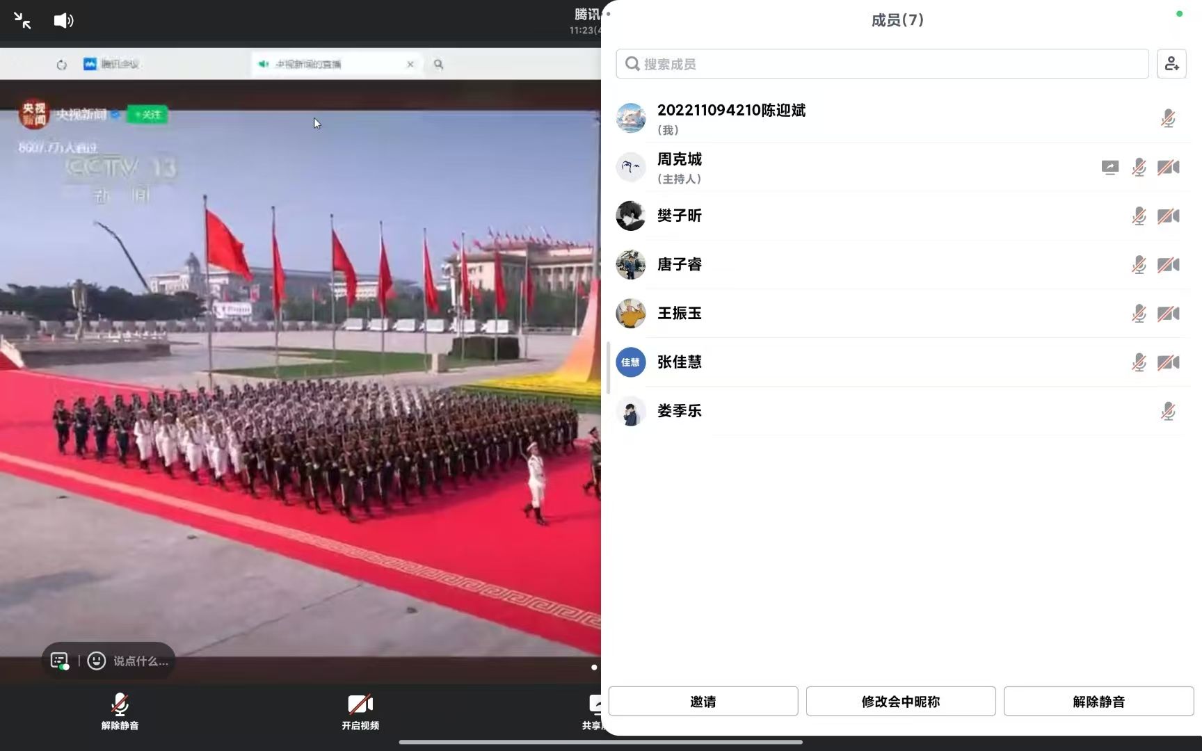 阅兵仪式正式开始时,同学们认真聆听习近平总书记的重要讲话。人民英雄纪念碑前,受阅部队整齐划一的步伐、铿锵有力的口号、英姿飒爽的面貌,以及各类先进装备的震撼亮相,全面展现了新时代国防和军队建设的辉煌成就,彰显了国家实力的飞速发展和维护和平的坚定决心。大家聚精会神,认真观看阅兵画面,被阅兵式中激动人心的场景深深感染。